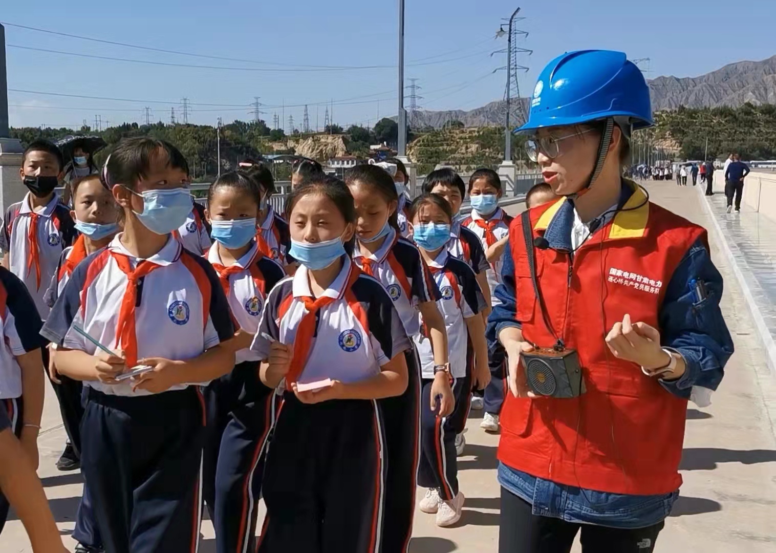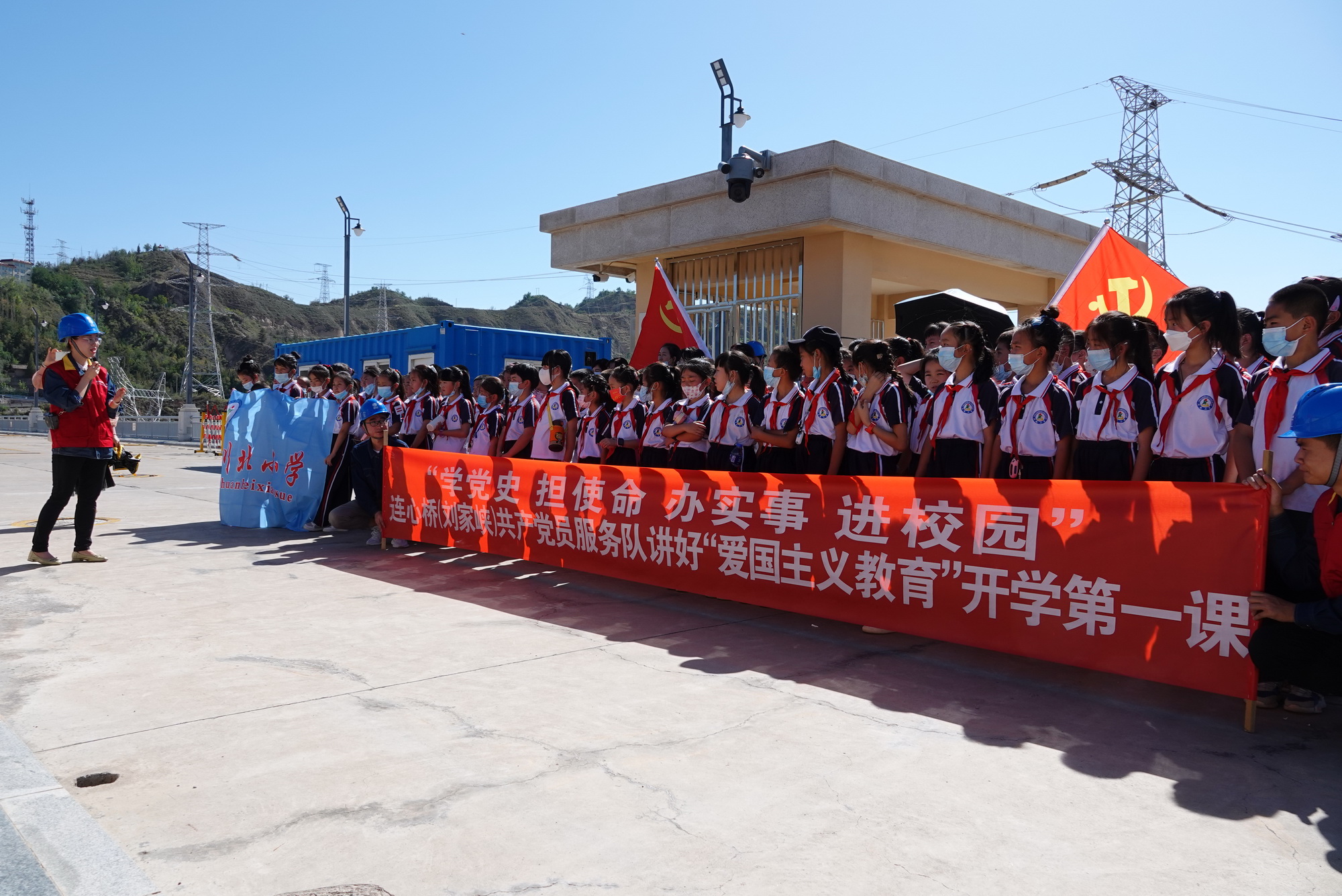 9月7日,國家電網(wǎng)甘肅電力連心橋(劉家峽)共產(chǎn)黨員服務(wù)隊隊員化身輔導(dǎo)員,使永靖縣川北小學(xué)100名師生體驗了一堂生動的愛國主義教育課。