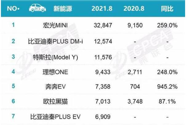 8月份國(guó)內(nèi)新能源汽車銷量排名數(shù)據(jù)顯示,熱銷第一名、第二名分別是宏光miniEV、比亞迪秦plus DM-i,而特斯拉model Y僅位居第三名,曾經(jīng)位列國(guó)內(nèi)熱銷新能源汽車榜首的model3已在TOP15中消失。