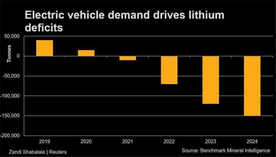 Benchmark Mineral Intelligence數(shù)據(jù)顯示,鋰需求將大增26.1%,使今年的市場缺口達(dá)到1萬噸。