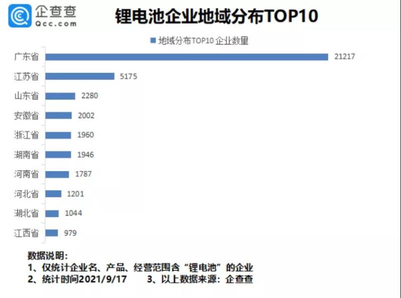 從地域分布來看,目前我國擁有鋰電池相關(guān)企業(yè)主要分布在廣東、江蘇、山東等省份。其中,廣東擁有2.12萬家鋰電池相關(guān)企業(yè),位居全國第一。江蘇、山東排第二、三名,分別為5175家、2280家。其次是安徽、浙江、湖南等省份。