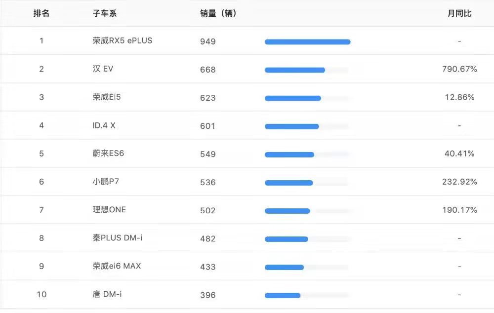 但是,來(lái)自上汽榮威的RX5 ePLUS車型成為上海8月單一車型銷量榜的冠軍,該車在上海地區(qū)的8月銷量達(dá)到949輛,超過(guò)第二名比亞迪漢 EV車型281臺(tái)。
