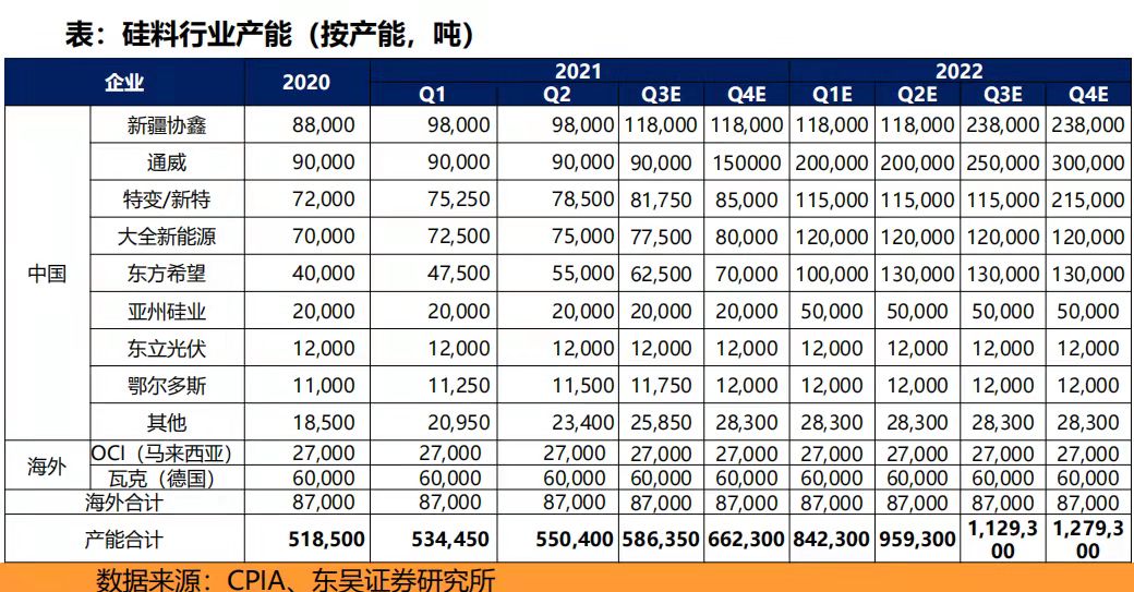 預(yù)計(jì)到2022年末國內(nèi)硅料產(chǎn)能將翻一番,通威股份、保利協(xié)鑫等龍頭企業(yè)的規(guī)模壁壘愈發(fā)提升