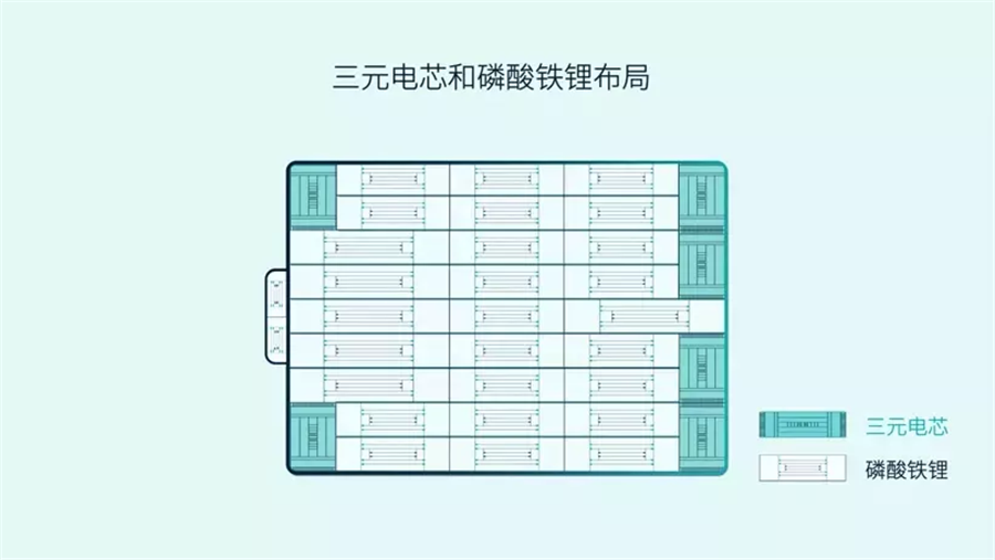 2. 采用三元鐵鋰電池與磷酸鐵鋰電池混合排布;