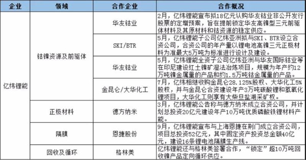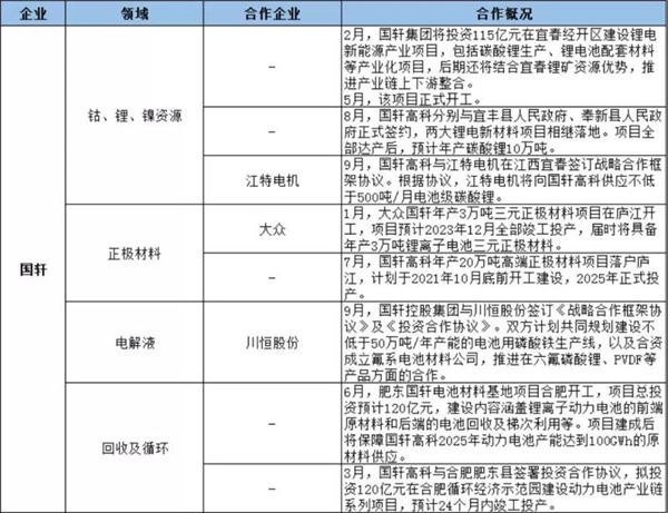 來看2021年以來,寧德時(shí)代、國(guó)軒高科、億緯鋰能等頭部動(dòng)力電池企業(yè)的上游資源的加速布局: