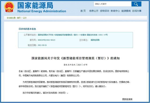 據(jù)國家能源局網(wǎng)站消息,為規(guī)范新型儲(chǔ)能項(xiàng)目管理,推動(dòng)新型儲(chǔ)能積極穩(wěn)妥健康有序發(fā)展,促進(jìn)以新能源為主體的新型電力系統(tǒng)建設(shè),支撐碳達(dá)峰、碳中和目標(biāo)實(shí)現(xiàn),國家能源局印發(fā)《新型儲(chǔ)能項(xiàng)目管理規(guī)范(暫行)》的通知。
