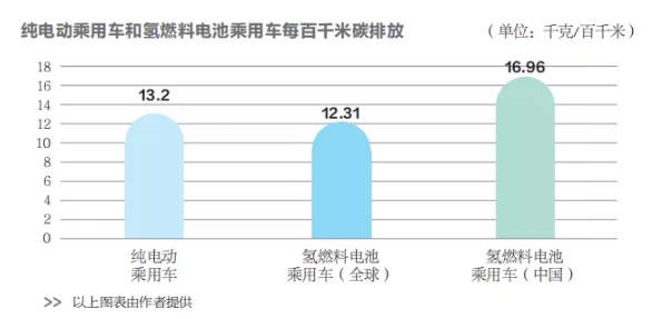 從全球角度來看,氫燃料電池乘用車的碳排放低于純電動乘用車,但按照我國能源結(jié)構(gòu)和制氫方式來測算,氫燃料電池乘用車的碳排放高于純電動乘用車,這是因為我國當(dāng)前生產(chǎn)的氫氣還是以灰氫和藍(lán)氫為主,因此,氫燃料電池汽車相比電動車在環(huán)保方面處于下風(fēng)。
