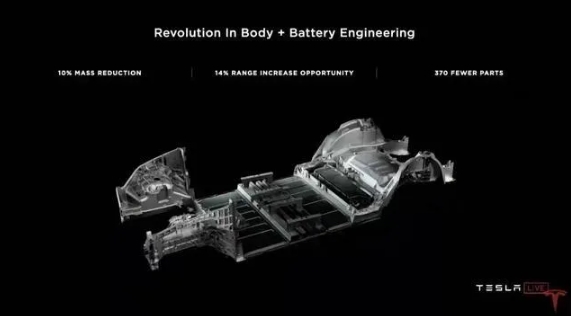 當前,特斯拉的電池架構(gòu)是通過將電芯組合成模塊,這些模塊組合在一起形成電池組,然后把電池組安裝在車輛平臺上。新架構(gòu)的不同之處在于,特斯拉不再使用模塊,而是將整個電池組構(gòu)建為車輛的結(jié)構(gòu)平臺,這種新設計能有效減少零部件的數(shù)量和電池組的總質(zhì)量,因此有利于提高效率,降低成本,并最終提高電動汽車的續(xù)航里程。
