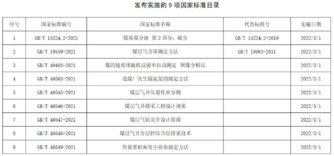 此次發(fā)布實施的煤炭領(lǐng)域國家標(biāo)準(zhǔn)中,《煤層氣含量測定方法》《煤層氣井壓裂作業(yè)導(dǎo)則》《煤層氣井排采工程設(shè)計規(guī)范》《煤層氣鉆完井設(shè)計指南》《煤層氣井分層控壓合層排采技術(shù)規(guī)范》等5項標(biāo)準(zhǔn),將為我國低階煤煤層氣地質(zhì)勘探與資源潛力評價和開發(fā)提供指導(dǎo),優(yōu)化我國復(fù)雜地質(zhì)條件地區(qū)煤層氣開發(fā)技術(shù)方案,推動煤層氣資源開采利用的最大化?!睹旱溺R質(zhì)體隨機反射率自動測定 圖像分析法》《選煤廠次生煤泥量的測定方法》《焦炭堆積密度小容器測定方法》等3項方法標(biāo)準(zhǔn),為煤炭資源評價、商品煤質(zhì)量監(jiān)管等方面提供有力支撐。《煤炭質(zhì)量分級 第2部分:硫分》對于科學(xué)評價煤炭資源中的硫分、指導(dǎo)煤炭生產(chǎn)和加工利用有著重要意義。