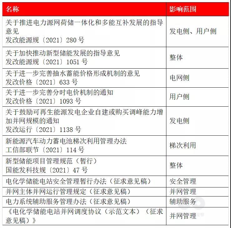 2021年9月底,《新型儲能項(xiàng)目管理規(guī)范(暫行)》《電化學(xué)儲能電站并網(wǎng)調(diào)度協(xié)議(示范文本)(征求意見稿)》先后發(fā)布。