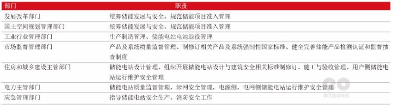 表1 《電化學(xué)儲能電站安全管理暫行辦法(征求意見稿)》中的部門職責(zé)