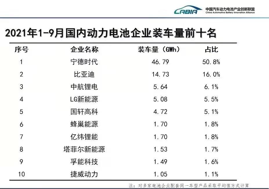 近日,中國(guó)汽車(chē)動(dòng)力電池產(chǎn)業(yè)創(chuàng)新聯(lián)盟發(fā)布2021年1-9月動(dòng)力電池裝機(jī)數(shù)據(jù),頗有看點(diǎn)。