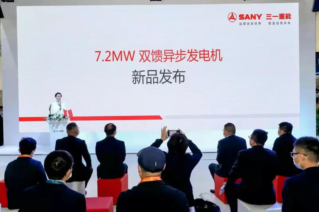 風能展期間,三一電機發(fā)布了7.2MW雙饋風力發(fā)電機。本次三一電機攜兩款全新機型YSK72-04和YSK72-06A亮相,兩款電機具有高效率、高可靠性、高功率密度、智能化四大特性。