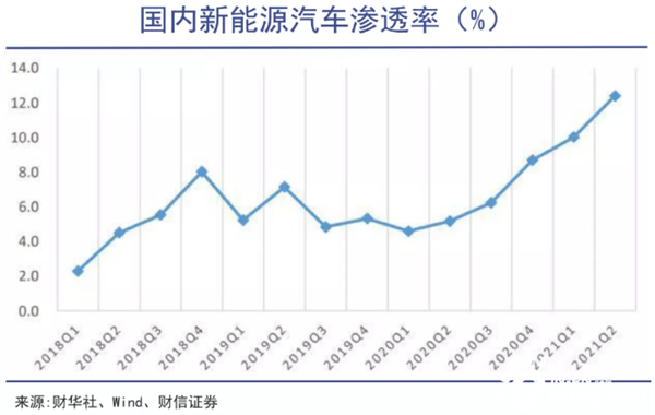 與此同時,國內(nèi)新能源汽車市場迅猛擴容,新能源汽車整體的滲透率已經(jīng)提升到10%以上。這意味著在過去一年多的時間里,新能源汽車的市場規(guī)模已擴大超過一倍以上,這持續(xù)倒逼動力電池行業(yè)快速發(fā)展。