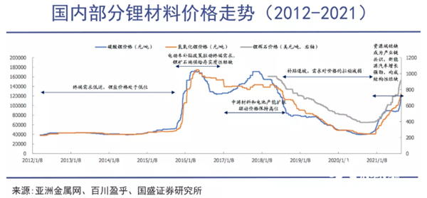以中航鋰電、比亞迪為代表的競爭者,正在影響著整條產(chǎn)業(yè)鏈的供需關(guān)系,鋰礦等重要原料的價格仍在不斷上漲,這在逼迫電池廠商盡可能掌控一些關(guān)鍵原材料的自給: