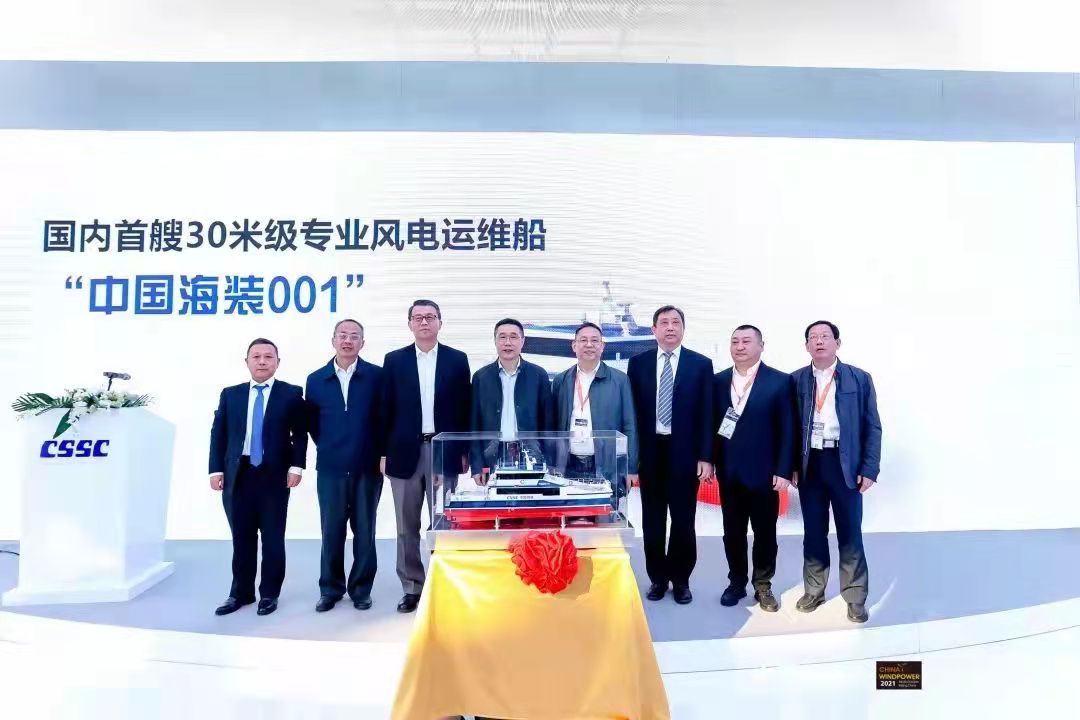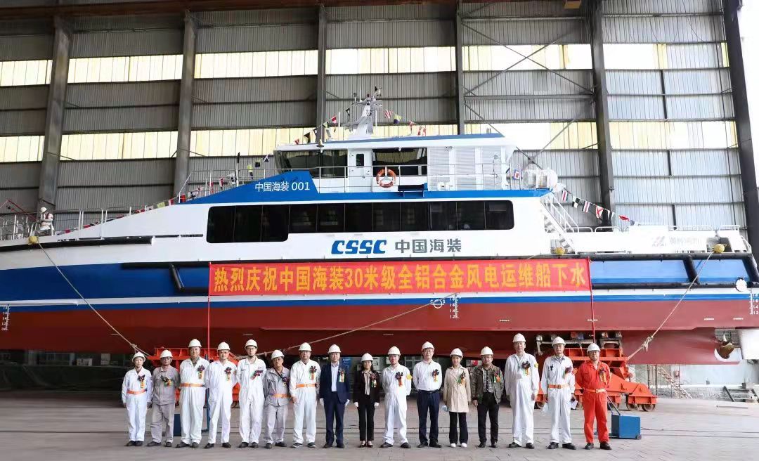2021年10月22日,由中國船舶集團(tuán)海裝風(fēng)電股份有限公司(下稱“中國海裝)與英輝南方船舶有限公司聯(lián)合設(shè)計制造的國內(nèi)第一艘30米級專業(yè)風(fēng)電運(yùn)維船“中國海裝001”正式下水。該運(yùn)維船將從廣州番禺發(fā)運(yùn),并于 2021年底開始服役,從此踏上征途,奔赴星辰大海,守護(hù)每一臺風(fēng)機(jī)的正常運(yùn)行。