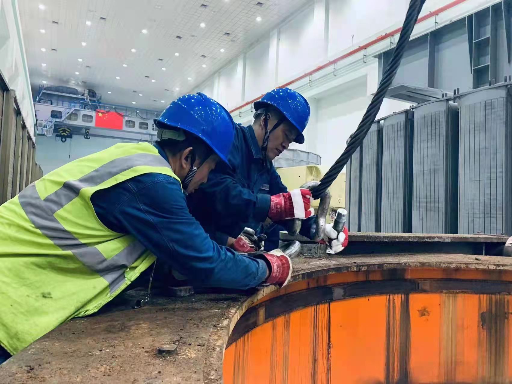 今年10月10日,劉家峽水電廠(chǎng)2號(hào)機(jī)組整機(jī)改造工作正式啟動(dòng)。馬學(xué)明和同事們爭(zhēng)分奪秒完成檢修平臺(tái)的搭設(shè)后,全身心的投入機(jī)組分解起吊任務(wù)中。13日上午200噸的上機(jī)架順利吊出,14日上午650噸的發(fā)電機(jī)轉(zhuǎn)子順利吊出,18日上午114噸的轉(zhuǎn)輪吊出,至此機(jī)組分解工作圓滿(mǎn)完成。轉(zhuǎn)子起吊是機(jī)組分解的“重中之重”,發(fā)電機(jī)轉(zhuǎn)子與定子間的間隙只有幾厘米,吊裝時(shí)稍有不慎就會(huì)撞傷設(shè)備、損壞定子線(xiàn)棒絕緣,每次作業(yè)不但要協(xié)調(diào)好工作組成員與橋式起重機(jī)司機(jī)間的密切配合,還要消滅視覺(jué)死角。起吊前,馬學(xué)明跑前跑后,檢查橋機(jī)并車(chē)情況,起重梁的套裝是否安全到位、聯(lián)合檢查兩輛橋機(jī)行走、起落是否同步,分配工作人員在轉(zhuǎn)子與定子間插插板,在大件設(shè)備起吊前,嚴(yán)格做到“三起三落”的試探性起吊……作為總指揮的他,每次都能安全高效地完成轉(zhuǎn)子吊裝等任務(wù)。