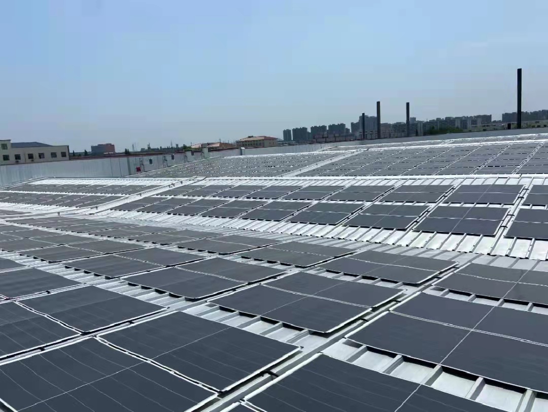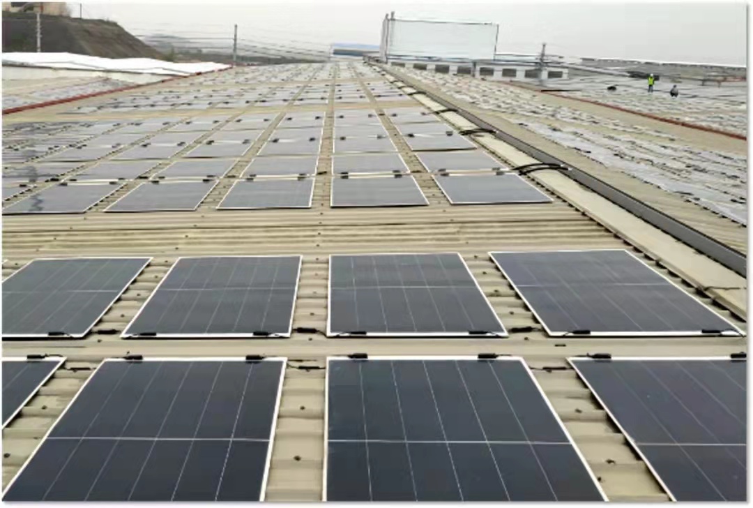 項(xiàng)目充分結(jié)合工廠建筑的特點(diǎn),針對(duì)車(chē)間屋面T型彩鋼瓦的特點(diǎn),采用輕質(zhì)組件。一道新能輕質(zhì)組件4.3kg/㎡的組件重量,相較常規(guī)組件減重70%,順利解決安裝屋面承重力較低的問(wèn)題,規(guī)避屋面塌陷、結(jié)構(gòu)失效等建筑安全問(wèn)題。