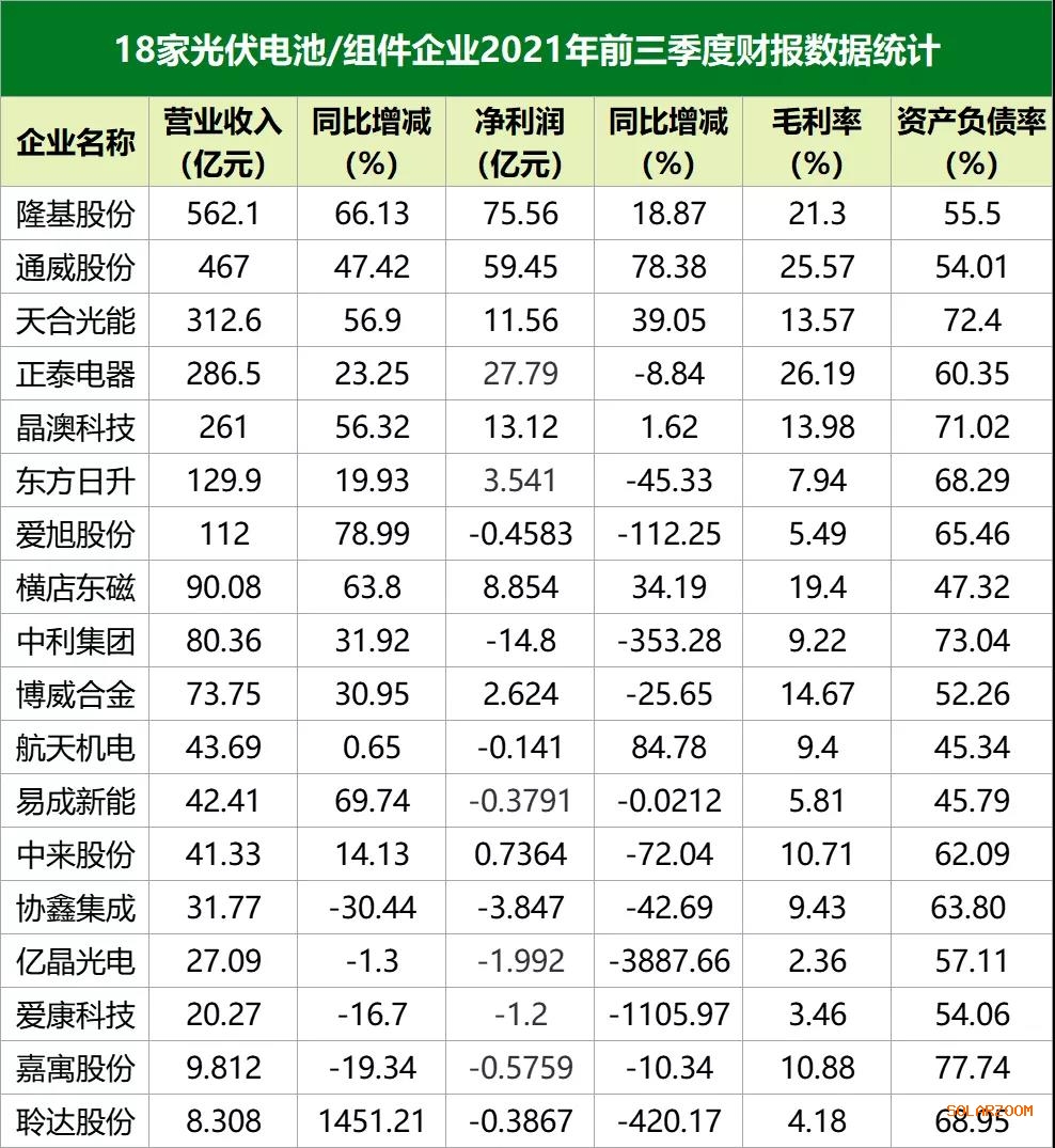 近期,光伏上市企業(yè)2021年前三季度業(yè)績報告相繼出爐。