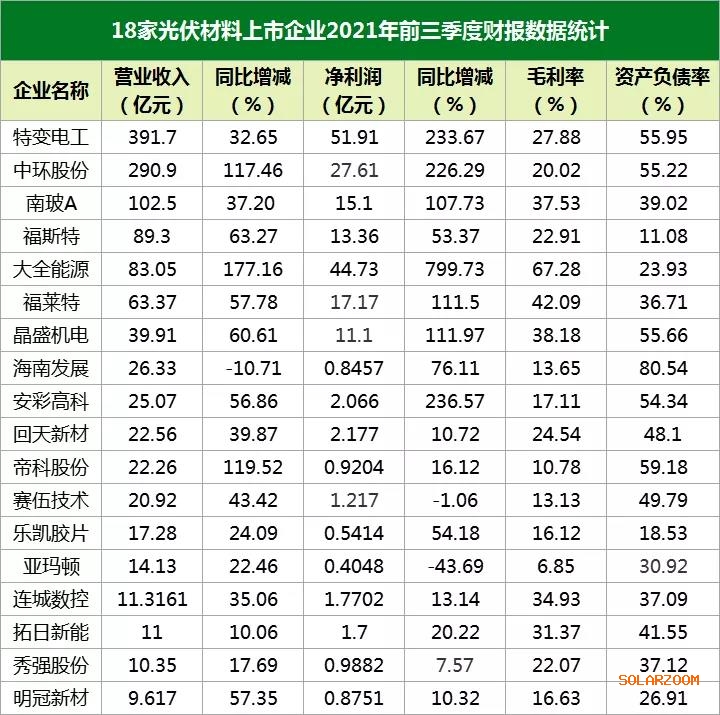在光伏材料中,國際能源網(wǎng)/光伏頭條集中梳理了光伏多晶硅、光伏硅片、光伏膠膜、光伏背板、光伏玻璃等18家企業(yè)前三季度業(yè)績。