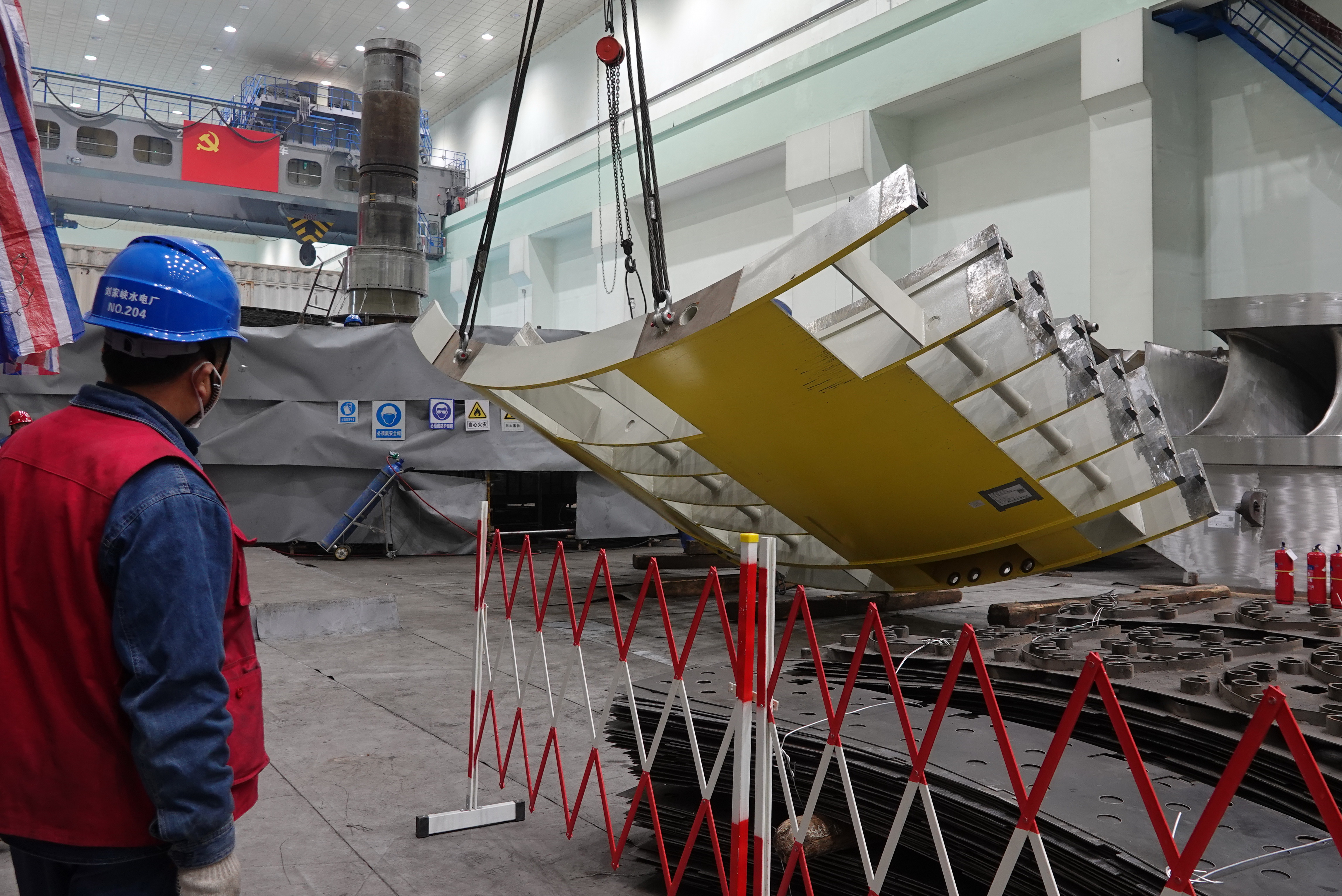 11月5日,隨著清脆的哨聲響起,國(guó)網(wǎng)甘肅劉家峽水電廠2號(hào)機(jī)組定子機(jī)座緩緩吊入機(jī)坑,標(biāo)志著該機(jī)組機(jī)電安裝工作正式開(kāi)始。