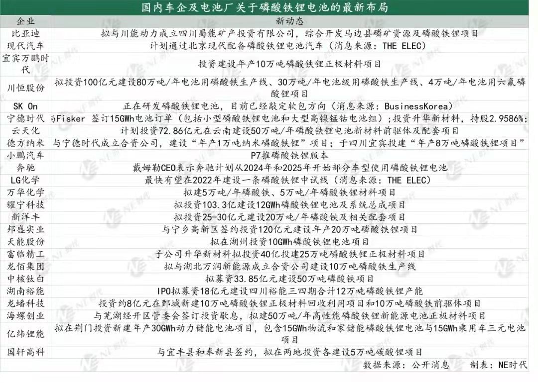 整個電池產(chǎn)業(yè)鏈上下游,似乎都在向磷酸鐵鋰靠攏。