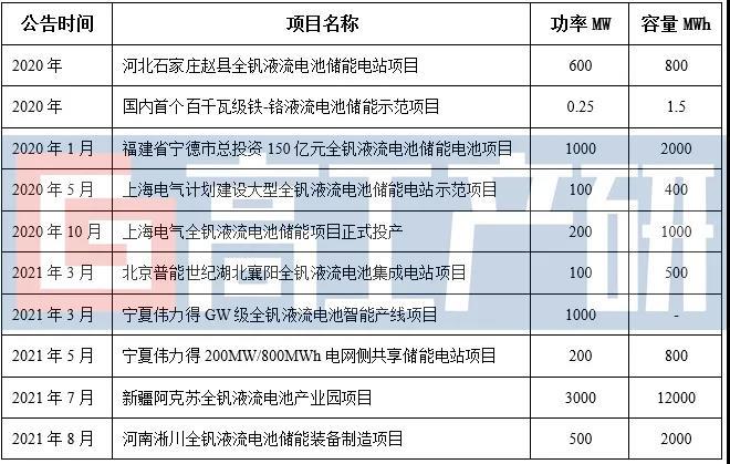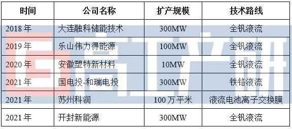 2021年國(guó)內(nèi)主要液流電池產(chǎn)業(yè)鏈擴(kuò)產(chǎn)項(xiàng)目(部分)