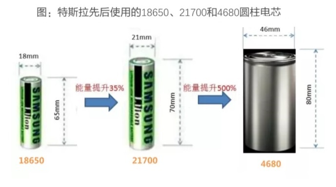 所謂4680,其實(shí)是對(duì)電池尺寸的概括(圓柱電池尺寸為直徑46mm,電池高度80mm),以此替代此前特斯拉使用的主流18650電池和21700電池。