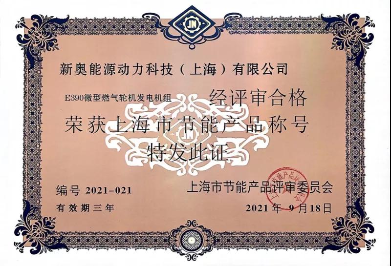 新奧動(dòng)力E390微型燃?xì)廨啓C(jī)發(fā)電機(jī)組入選“上海市節(jié)能減排技術(shù)產(chǎn)品推廣目錄”,并于11月11日在上海市節(jié)能產(chǎn)品評(píng)審?fù)茝V綠色沙龍活動(dòng)中獲得“上海市節(jié)能產(chǎn)品稱(chēng)號(hào)“證書(shū)。