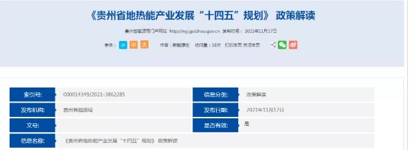 2021年11月17日,貴州省能源局官網(wǎng)發(fā)布了《貴州省地?zé)崮墚a(chǎn)業(yè)發(fā)展“十四五”規(guī)劃》 政策解讀一文。全文介紹了《規(guī)劃》編制的目的意義,闡述了地?zé)崮墚a(chǎn)業(yè)發(fā)展目標(biāo)、規(guī)劃布局、重點(diǎn)任務(wù)等內(nèi)容,以及六項(xiàng)保障措施。