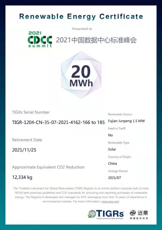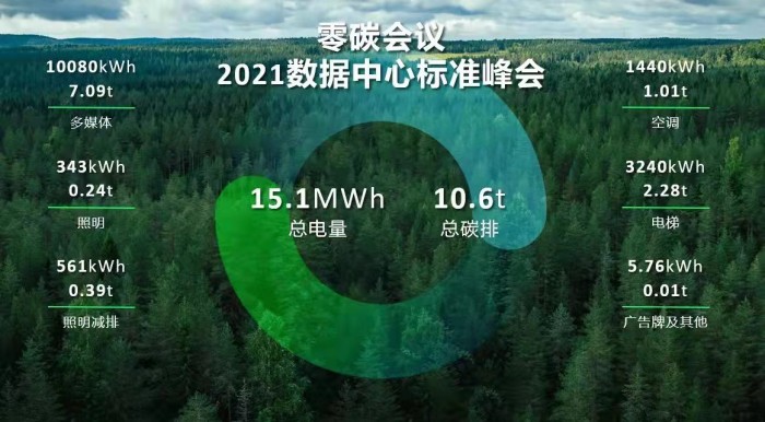 據(jù)第三方機構(gòu)碳足跡評估測算,2021數(shù)據(jù)中心標準峰會的各會場,在本屆峰會期間二氧化碳排放當量約為10.6噸,通過節(jié)能減排和采購綠證的方式實現(xiàn)了數(shù)據(jù)中心行業(yè)首場“零碳會議”的落地。