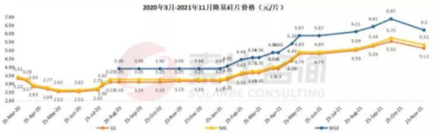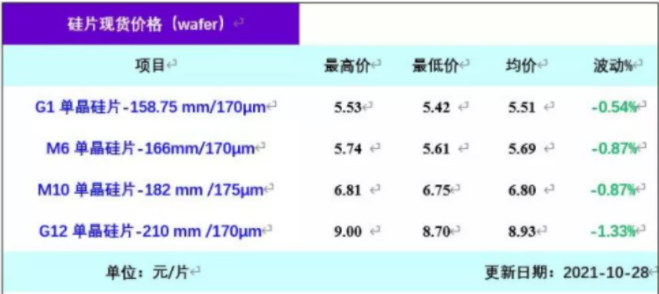 10月下旬,因光伏產業(yè)鏈價格持續(xù)上漲,終端電站建設需求低迷,硅片出現了小幅下滑的跡象。由于對年末搶裝的預期,硅片價格隨后企穩(wěn)。