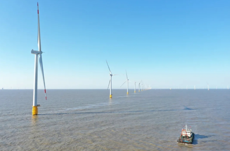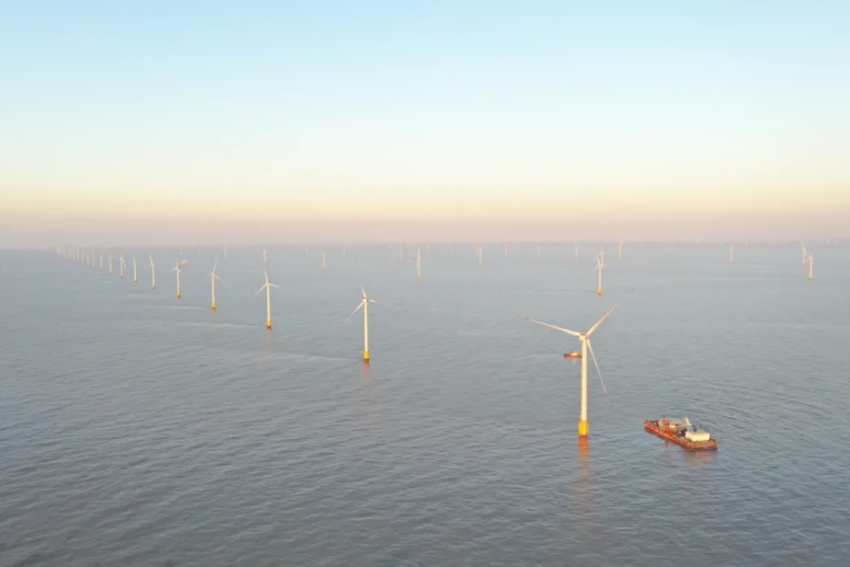 12月11日8時58分,隨著最后一臺39#風(fēng)機葉輪緩緩的轉(zhuǎn)動,國內(nèi)離岸距離最遠(yuǎn)、風(fēng)機基礎(chǔ)種類最多的中廣核如東H8#海上風(fēng)電場實現(xiàn)全容量并網(wǎng),經(jīng)亞洲首個海上柔性直流輸電系統(tǒng)向電網(wǎng)源源不斷輸送清潔能源。