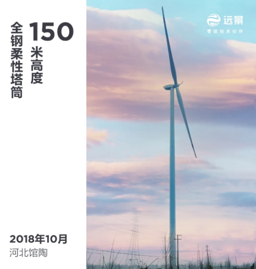 2018年10月,遠景能源創(chuàng)造了中國風(fēng)電的另一個里程碑——全國最高150米高度全鋼柔性塔筒EN-141/2.5MW低風(fēng)速智能風(fēng)機完成機艙吊裝。