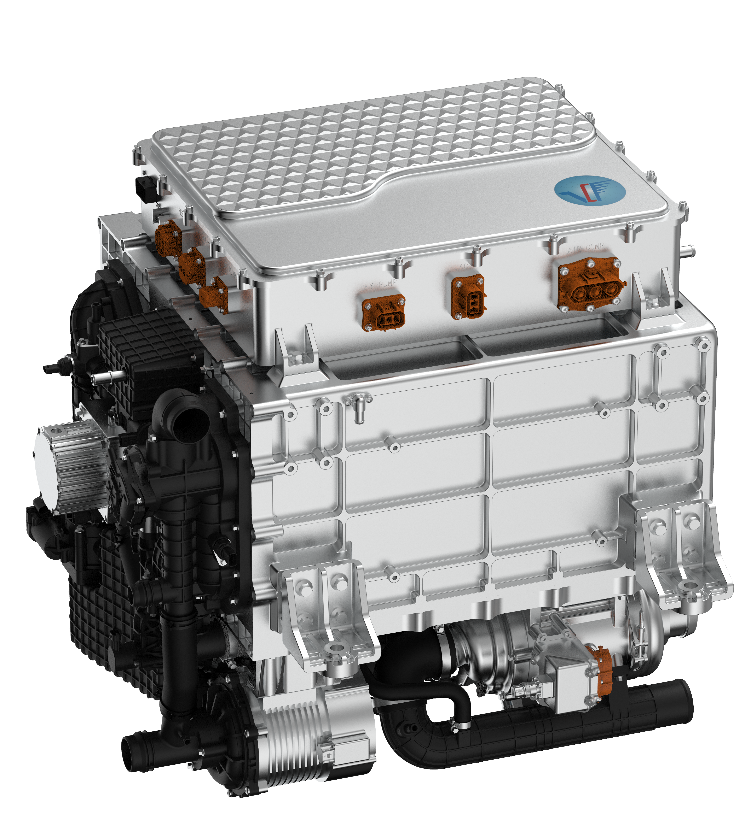 超越—神州200發(fā)動(dòng)機(jī)額定功率達(dá)到200kW,質(zhì)量功率密度760W/kg,最高效率達(dá)到60%,壽命超15000小時(shí)。通過創(chuàng)新的“混動(dòng)”氫循環(huán)技術(shù)(HHM—Hybrid Hydrogen Module),與單泵方案相比全線拉滿功率范圍,實(shí)現(xiàn)1%-100%無界限突破,實(shí)現(xiàn)了更節(jié)能、更高效的氫動(dòng)力混動(dòng)技術(shù),未來能夠大幅度降低系統(tǒng)氫耗,實(shí)現(xiàn)10%續(xù)航提升。