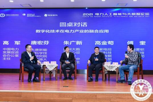 對話環(huán)節(jié),主持人中國電力發(fā)展促進會辦公室主任高軍與大唐新能源科學(xué)技術(shù)研究院新能源大數(shù)據(jù)中心副主任唐宏芬(線上)、國網(wǎng)大數(shù)據(jù)中心設(shè)計中心(創(chuàng)新中心)副主任朱廣新、國家電投數(shù)字科技公司數(shù)據(jù)與分析部高級經(jīng)理高金茍、上海霧幟智能科技有限公司CTO傅奎四位行業(yè)專家,以”數(shù)字化技術(shù)在電力產(chǎn)業(yè)的融合應(yīng)用”為主題,從國網(wǎng)大數(shù)據(jù)中心、國家電投數(shù)科以及大唐新能源公司在數(shù)據(jù)治理、應(yīng)用、開放、共享實踐經(jīng)驗展開分析,就如何推進數(shù)字化技術(shù)與電力行業(yè)的深度融合、推動電網(wǎng)企業(yè)生產(chǎn)、經(jīng)營、管理、服務(wù)業(yè)態(tài)的深度變革進行深入探討。