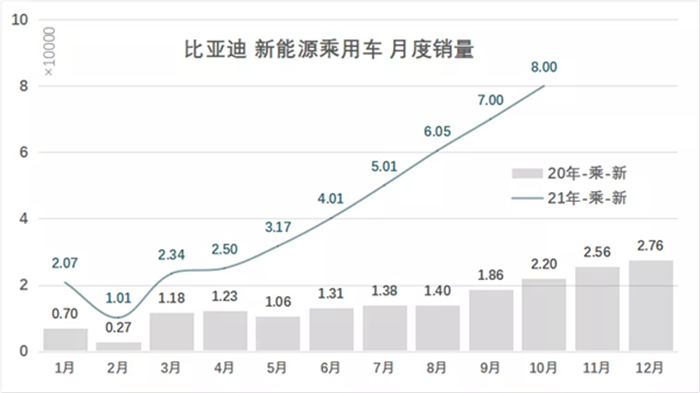 2021年全年,比亞迪汽車總銷量將會(huì)突破70萬(wàn)輛,創(chuàng)造新的歷史記錄。