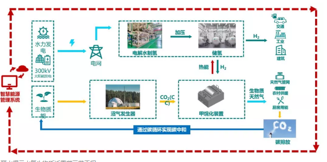 在不久的將來,以余量水電與屋頂光伏為能源,采用電解技術生產氫氣,并通過靈活儲氫的方式,最終實現(xiàn)富余水電、光伏就地消納,農村廢棄物循環(huán)利用的縉云水氫生物質近零碳示范工程,將走上電氫生物質協(xié)同的鄉(xiāng)村碳中和與新型電力系統(tǒng)舞臺,帶動更多新能源和生物質資源豐富的鄉(xiāng)村由“灰”變“綠”。