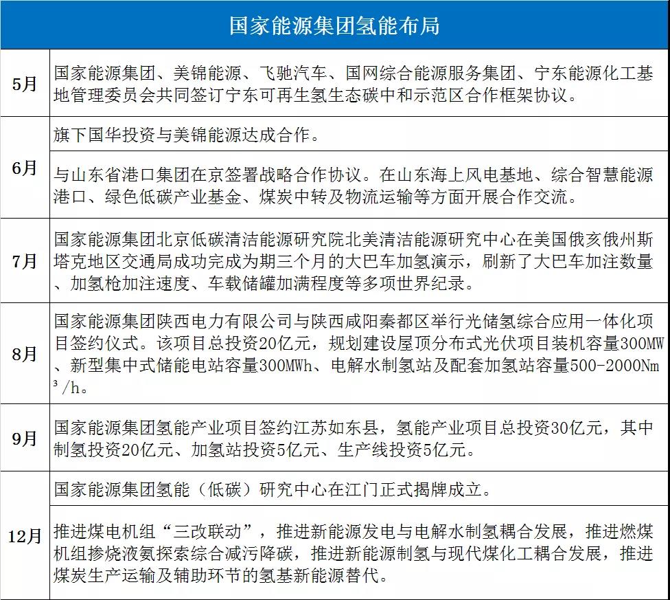 今年以來(lái),以中國(guó)石化、中國(guó)石油、國(guó)家電投、國(guó)家能源集團(tuán)、東方電氣、中國(guó)能建、中國(guó)船舶、華能集團(tuán)、華電集團(tuán)、東風(fēng)汽車(chē)、中車(chē)集團(tuán)、一汽集團(tuán)為代表的央企氫能布局表現(xiàn)突出,典型事件如下: