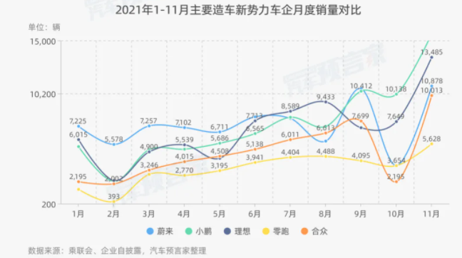 2021年,蔚來、小鵬、理想、哪吒等造車新勢力交付量持續(xù)突破,屢創(chuàng)新高。