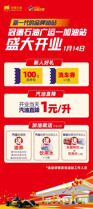 第一重禮:冠德石油新站開業(yè)當天加油,加油享鉅惠,汽油直降1元每升。