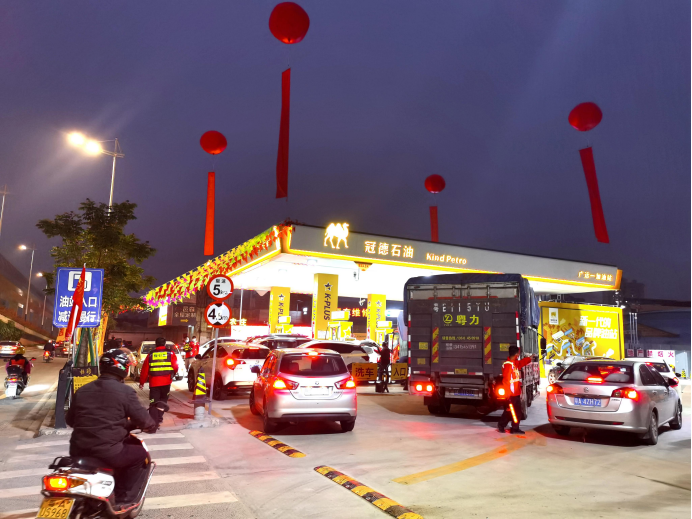 油站開業(yè)當天,彩旗、氣球等裝飾氛圍感十足,喜慶熱鬧的場面,從早上7點持續(xù)到深夜23點,絡繹不絕的車輛,與整齊劃一的員工服務形成了一道美麗的風景線。新站開業(yè)帶來的滿滿福利,為市民們?nèi)粘3鲂?、春?jié)返鄉(xiāng)加足了馬力。
