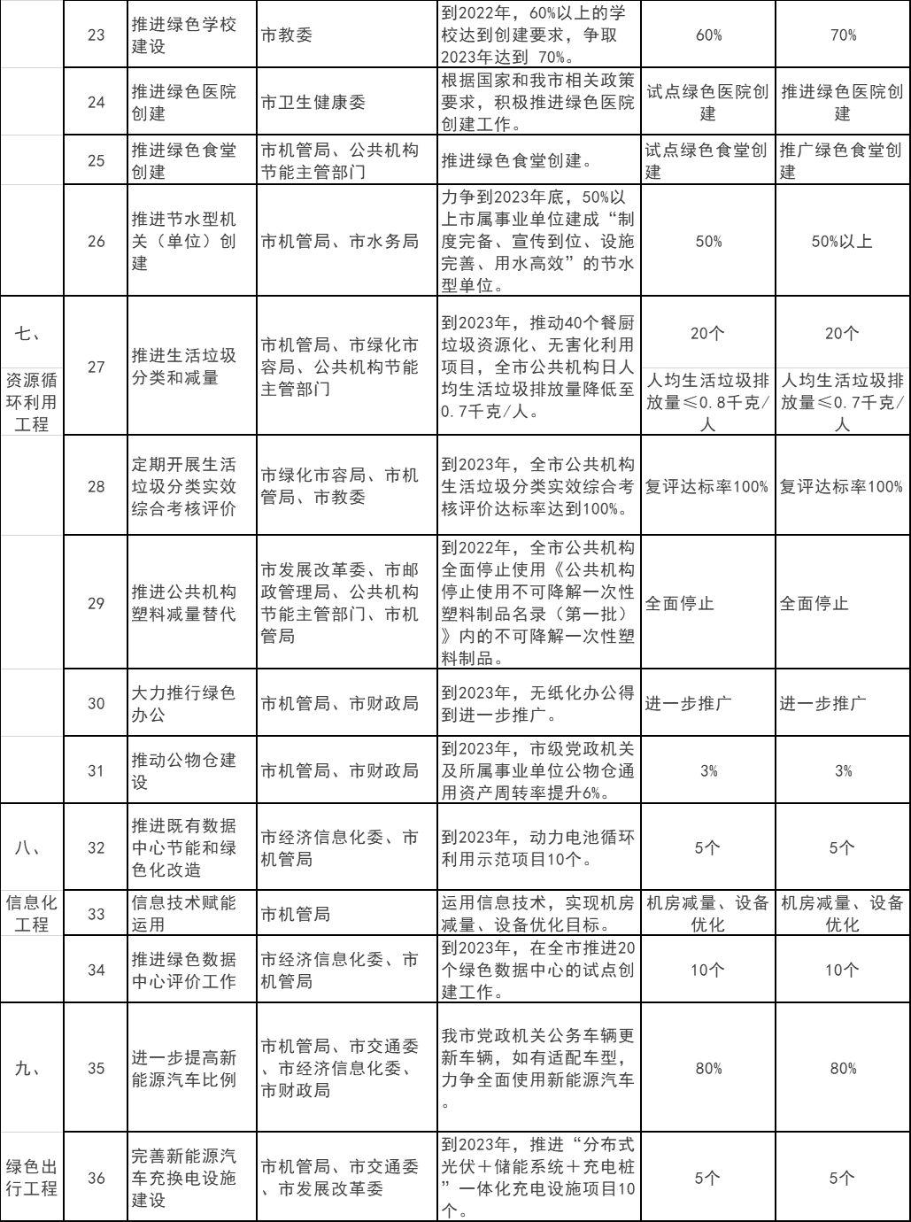 (責(zé)任單位:市機(jī)管局、市市級(jí)機(jī)關(guān)工作黨委、市發(fā)展改革委、市生態(tài)環(huán)境局、市公務(wù)員局、市教委、市衛(wèi)生健康委)
