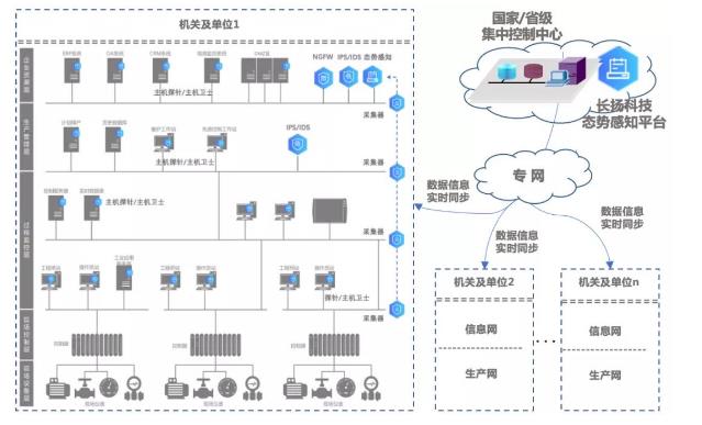 總部機構(gòu)部署長揚科技態(tài)勢感知平臺,同下屬機關(guān)單位的態(tài)勢感知平臺分布式對接,使其信息網(wǎng)生產(chǎn)網(wǎng)數(shù)據(jù)信息同總部實時同步,以“挖礦”流量數(shù)據(jù)、網(wǎng)絡安全數(shù)據(jù)、新基建關(guān)鍵基礎設施行業(yè)數(shù)據(jù)為基礎,以資產(chǎn)指紋、漏洞信息、威脅情報、網(wǎng)絡模型等海量數(shù)據(jù)為資源支撐,運用大數(shù)據(jù)、人工智能及云技術(shù),幫助中心機構(gòu)精準識別網(wǎng)絡威脅,提升風險評估、態(tài)勢感知、監(jiān)測預警及智能運營一體化的能力。
