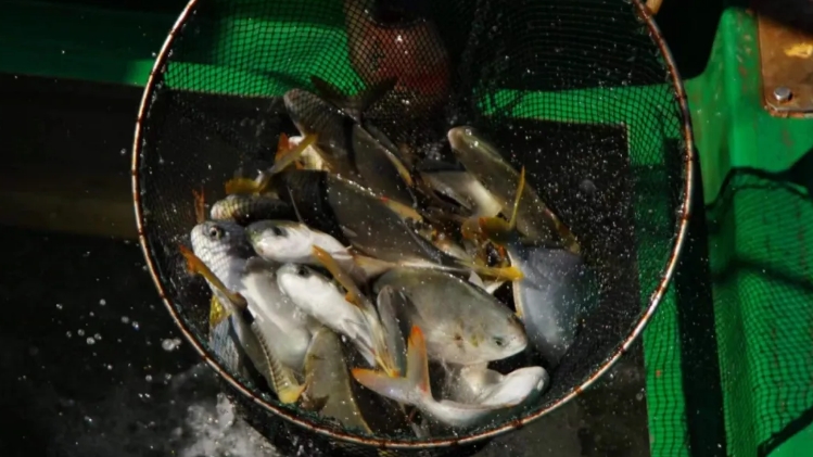 明陽陽江沙扒深海漁業(yè)養(yǎng)殖實驗區(qū)離岸超過30公里,相較于近岸常規(guī)養(yǎng)殖的金鯧魚,深海網(wǎng)箱金鯧魚養(yǎng)殖周期縮短,肉質(zhì)結(jié)實,味道更加鮮美。在高集成度的處理流程、冷鏈全覆蓋加持下,24小時內(nèi)就能走進(jìn)千家萬戶、走上百姓餐桌。