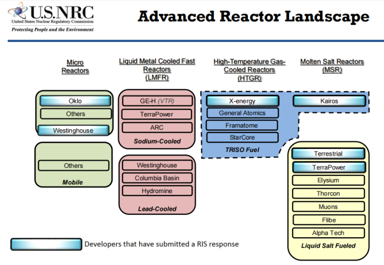 在美國核管會(huì)(NRC)內(nèi),所謂先進(jìn)堆(advanced nuclear power reactors),指“非輕水堆”設(shè)計(jì)。Oklo公司的奧羅拉(Aurora)核電裝置,是首個(gè)成功提交NRC并獲準(zhǔn)進(jìn)入“審評(píng)”程序的先進(jìn)堆設(shè)計(jì)。最近NRC還接受了Kairos Power公司熔鹽冷卻高溫堆的Hermes 試驗(yàn)堆設(shè)計(jì)審評(píng)。