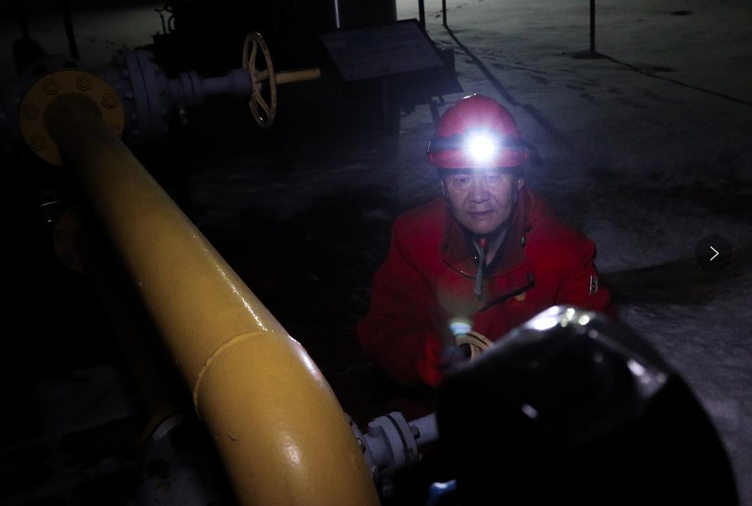 圖為:1月25日晚采油四廠廊東采油作業(yè)區(qū)員工宋建輝查看氣井壓力,確保該井雨雪天氣過后油氣平穩(wěn)生產(chǎn)。(宋常青 錢瑋瑋)