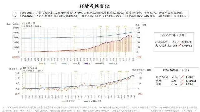 另外一個是環(huán)境的挑戰(zhàn)。環(huán)境和氣候的變化,這里有一個歷史的觀測記錄,從1850年開始到現(xiàn)在,170多年,看到全世界的碳排放不斷在增加,從最初的每年2.2億噸碳排放到現(xiàn)在的323億噸,所以對環(huán)境產(chǎn)生很大的壓力。同時也可以看到,同時期觀測到的地球二氧化碳的含量也是不斷在攀升,從原來的285PPM到現(xiàn)在的409PPM。下面這張圖可以看出,隨著碳濃度的增加,相應(yīng)的全世界的平均氣溫也在增加,幾乎跟大氣碳濃度水平是同步的,這樣的氣候產(chǎn)生的嚴重結(jié)果就是天氣災(zāi)害頻發(fā),這是環(huán)境的挑戰(zhàn)。