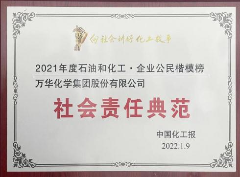 近日,中國化工報(bào)發(fā)布了2021年度中國石油和化工行業(yè)企業(yè)公民楷模榜,旨在通過在行業(yè)內(nèi)樹立勇?lián)鐣?huì)責(zé)任的業(yè)內(nèi)楷模,倡導(dǎo)更多企業(yè)加入可持續(xù)發(fā)展道路。萬華化學(xué)榮登2021年度中國石油和化工行業(yè)企業(yè)公民楷模榜。