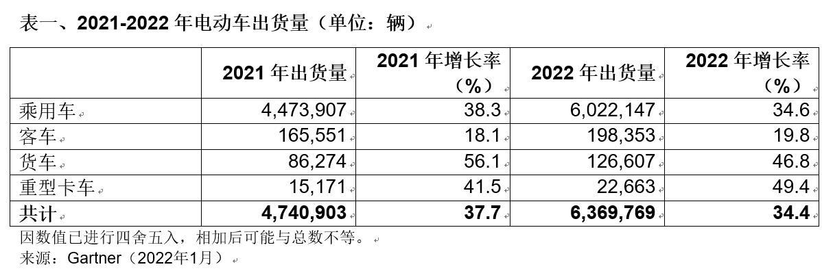 Gartner預(yù)測,電動(dòng)乘用車將占到2022年電動(dòng)車總出貨量的95%,客車、貨車和重型卡車僅占5%。