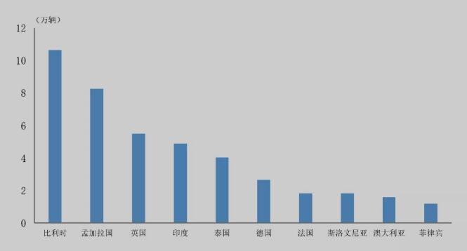 據(jù)中國汽車工業(yè)協(xié)會(huì)整理的海關(guān)總署數(shù)據(jù)顯示,2021年,中國新能源汽車出口量排名前十位國家依次是比利時(shí)、孟加拉國、英國、印度、泰國、德國、法國、斯洛文尼亞、澳大利亞和菲律賓。與上年相比,上述十國出口量均呈增長,其中斯洛文尼亞、澳大利亞和泰國增速最為明顯。2021年,上述十國新能源汽車出口42.4萬輛,占新能源汽車出口總量的77.8%。
